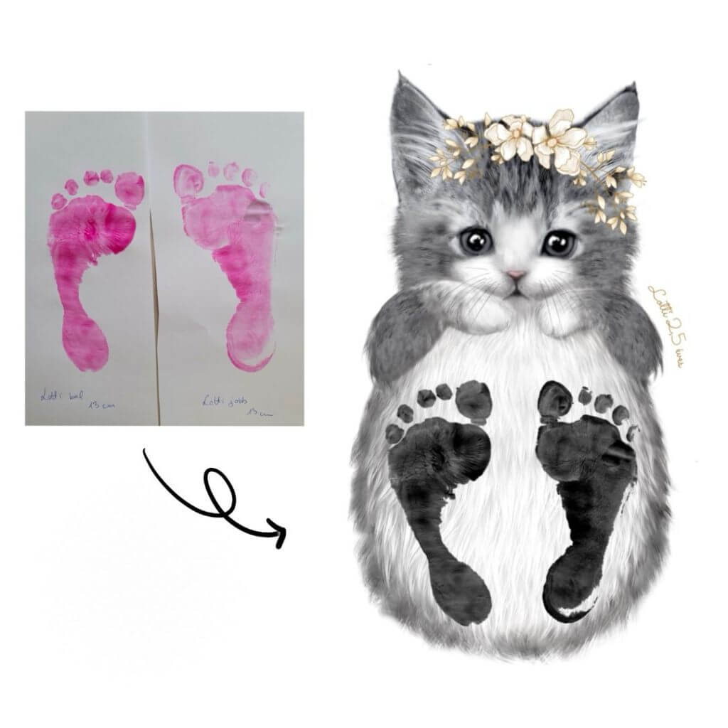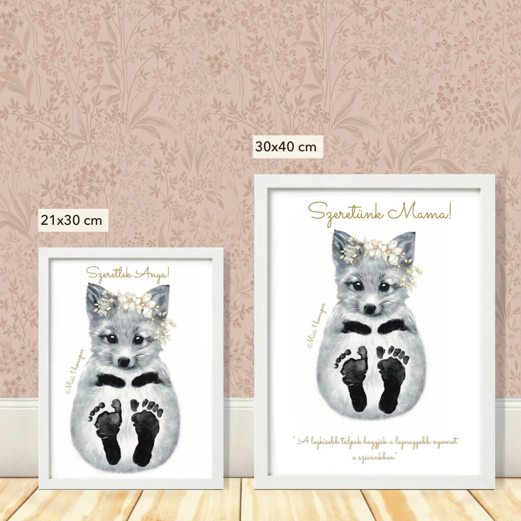 Minden poszter az általam készített illusztráció digitális másolata. Ebbe az illusztrációba szerkesztem a gyermeked eredeti talplenyomatának pontos mását. A folyamat során megőrzöm a babatalp eredeti jellegét, esetleges tökéletlenségét, a tinta adta foltokat, hiányokat és bőrredőket, mert ettől lesz egyedi és hasonlatos az eredetire. A rajzolás során a talpacska méretére is figyelek, így pont akkora lesz a képen, mint a lenyomatvétel időpontjában. Ha a lenyomatvétellel, fotózással kapcsolatban kérdésed van, olvasd el a gyakran ismételt kérdéseket.